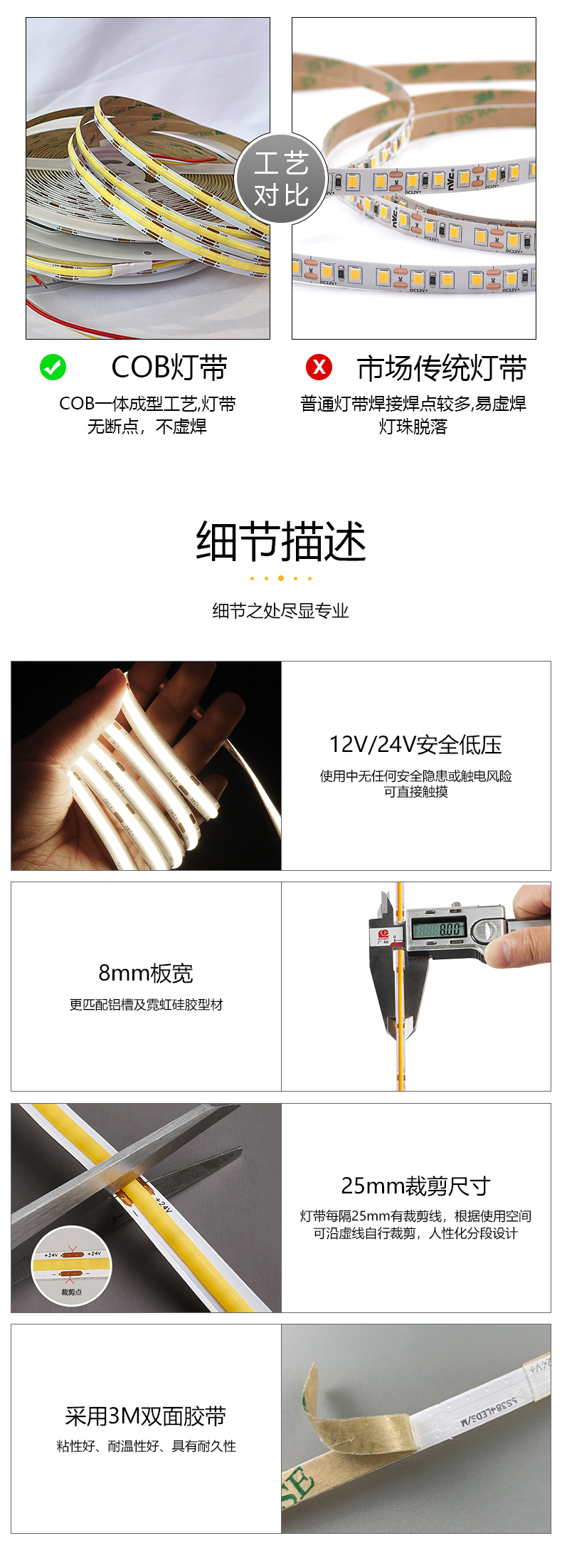 熱門標(biāo)簽: 12V24V8mmCOB燈帶可按照需求選擇發(fā)光顏色戶外防水滴膠套管魚缸